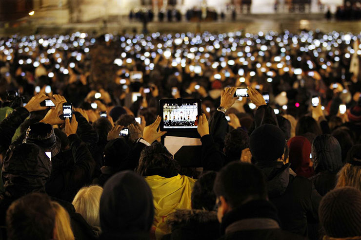 Imagine de la primul discurs public al Suveranului Pontif, Papa Francis.