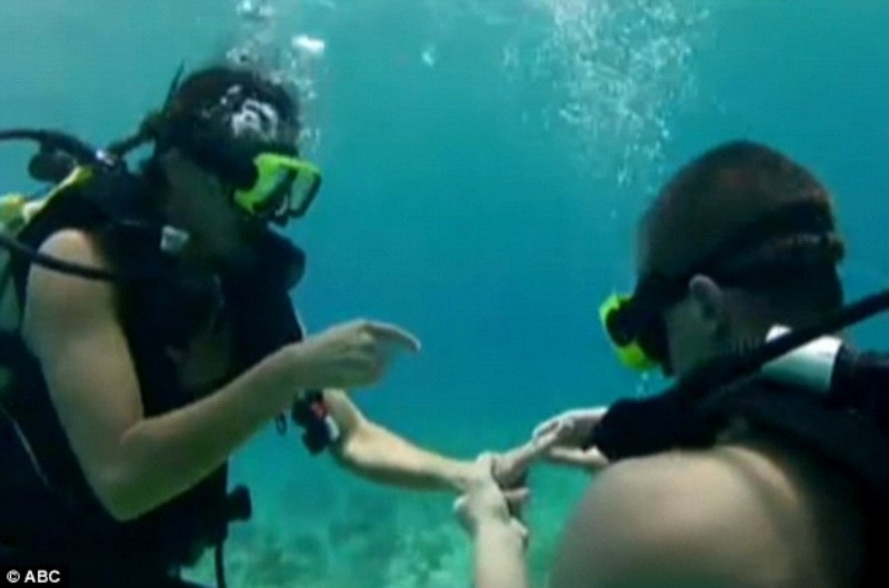 S-a întâmplat pe insulele Caraibe, iar eroul este Joseph House, care i-a făcut o surpriză de milioane iubitei sale Jessica Forbes. Acesta i-a cerut mâna fetei chiar în timp ce făceau scufundări. Pe lângă inelul de logodnă - elementul indispensabil al unei asemeni ceremonii, Joseph a elaborat și o „hartă a relației lor”. Gestul tânărului este pe cât de excentric pe atât de romantic. Cum să nu spui DA?