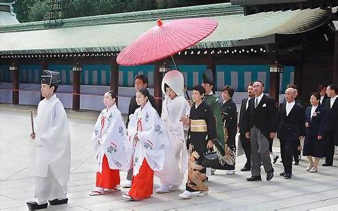 Potrivit tradiţiei, acestea trebuie să poarte kimonoul, rochia de mireasă tradiţională japoneză, cel puţin cinci ore înainte de începerea ceremoniei.