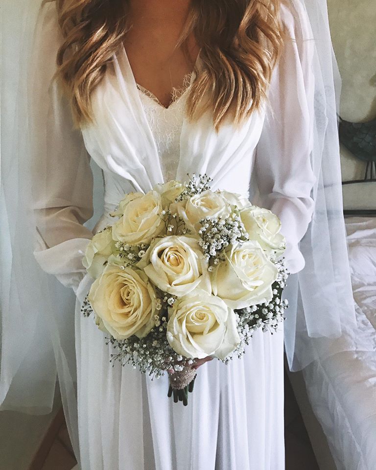 Aceasta a postat și o fotografie ce trădează cum arată rochia de mireasă pe care a ales s-o poarte în această zi frumoasă, dar și buchetul miresei.