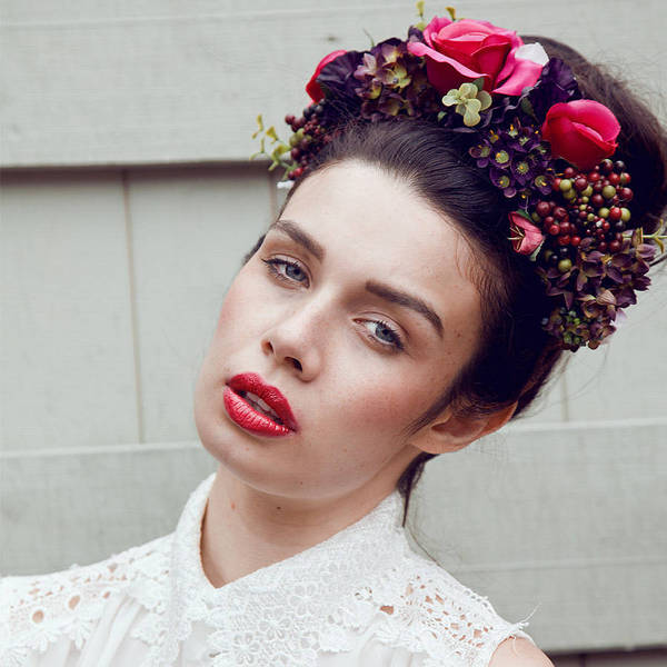 Pentru un look romantic fă-ţi bucle lejere şi pune-ţi pe cap o coroniţă din trandafiri şi afine roşii.