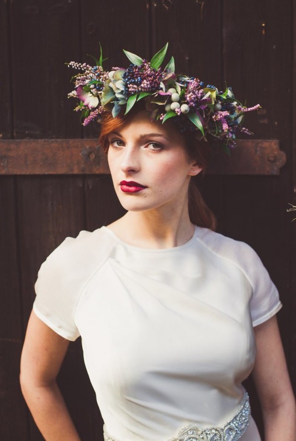 Vei obţine un look cool, extraordinar, dacă vei opta pentru o coroană din plante agăţătoare şi afine roşii.