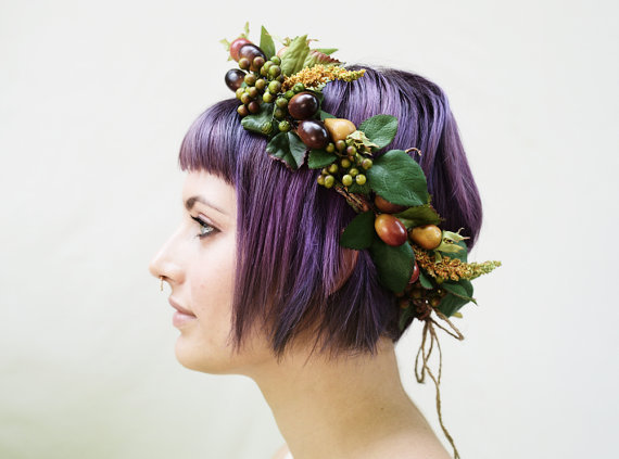 Dacă vrei să arăţi ca o adevărată nimfă împleteşte-ţi o coroniţă din frunze mari, afine şi fructe de humuz.