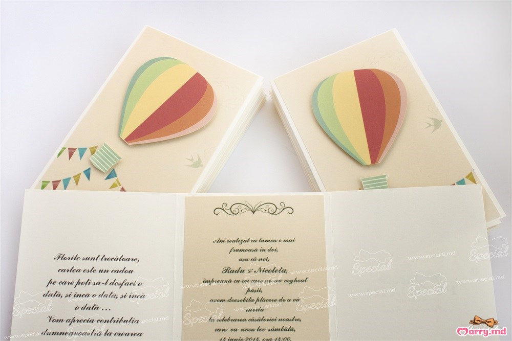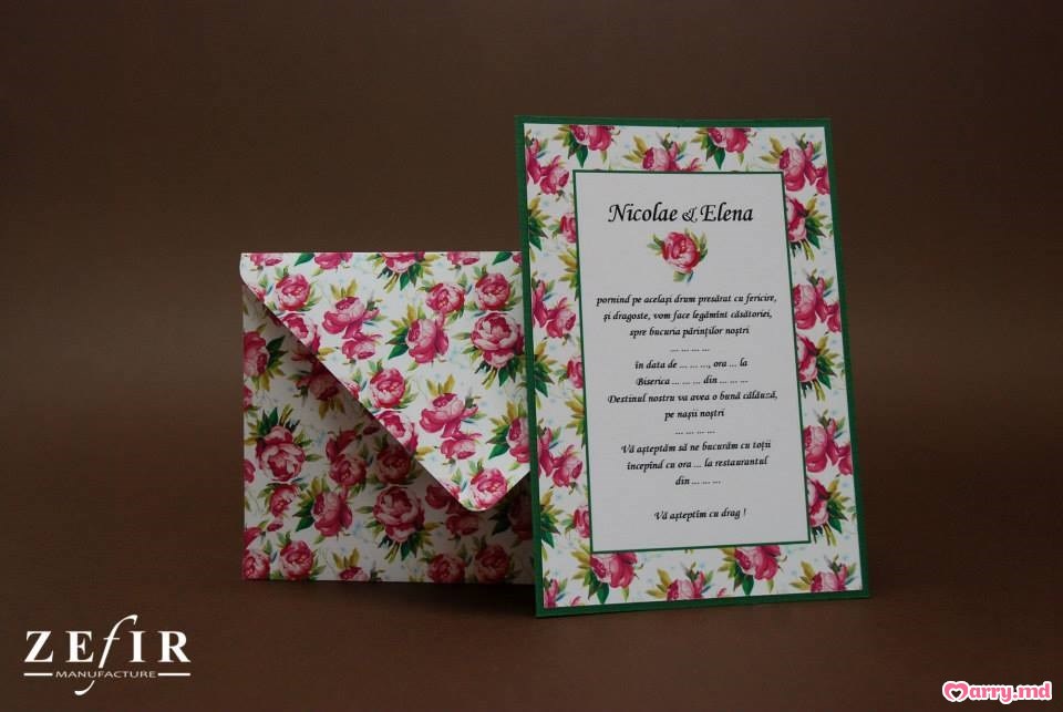 Cu siguranță sunteți în căutarea unui model special de invitații, prin care să vă surprindeți plăcut oaspeții, să-i intrigați și pe lângă toate - să le lăsați și o amintire frumoasă din ziua în care i-ați invitat să celebreze împreună cu voi prima și cea mai importantă sărbătoare din viața voastră de cuplu, de aceasta vă sfătuim să alegeți modele de invitații, care să reflecte perioada caldă și plină de miresme a anului dar și starea voastră interioară de dragoste și armonie.