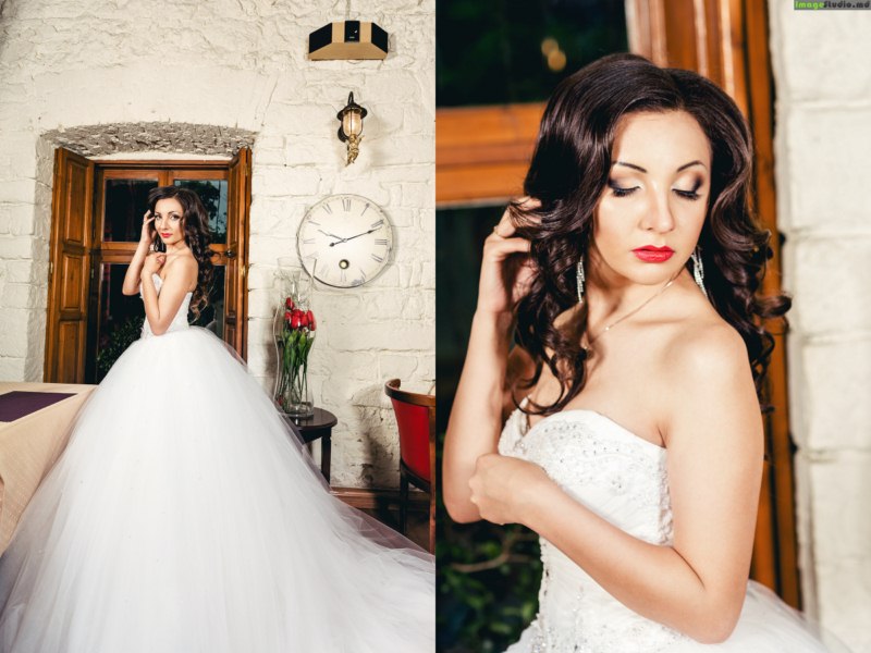 Mireasa noastră și-a ales rochia din a doua încercare. Înfoiată, de un alb imaculat, cu un decolteu în formă de inimă, ce se dispersează în sute de cristale radioase, această rochie i-a pus în evidență silueta bine sculptată și i-a luminat chipul gingaș. Viitoarele domnișoare de onoare au votat unanim pentru această rochie, iar aventura a continuat în Salonul de Frumusețe Andrei Cocieru.