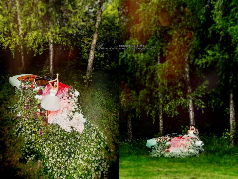 Aventura viitorilor miri s-a încheiat cu o ședință foto în sânul naturii, de la care nu a lipsit un automobil retro de un alb imaculat, decorat generos cu flori în nuanțe gingașe de roz și mov, care a definitivat stilul vintage ales de către tinerii însurăței pentru ziua nunții lor. Imaginile fabuloase de la ședința foto surprind întreg peisajul, puteți să gustați și voi din el, urmărind emisiunea Ghidul Miresei.