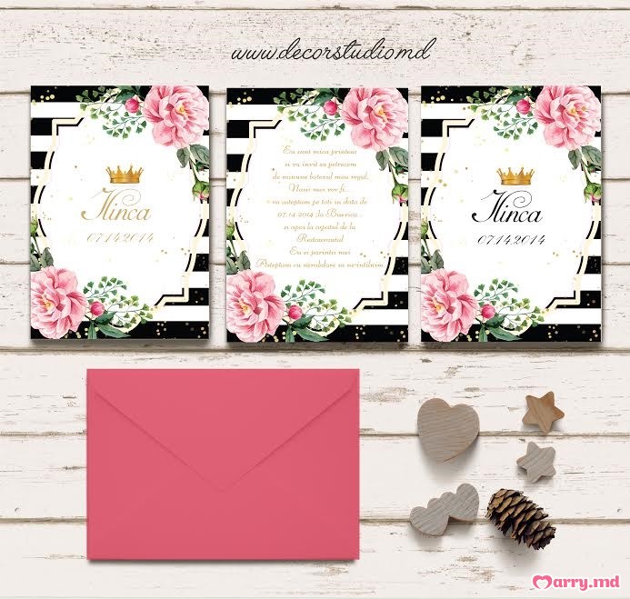 Un alt moment important în pregătirile de nuntă sunt și crearea invitațiilor de nuntă, fiind un detaliu esențial. Tematica de nuntă e stabilită, atunci invitațiile de nuntă, cardurile de mese și plicurile pentru bani ar trebui să se încadreze în același stil. Comandati articolele de papetărie pentru nuntă – Includeți în comanda invitațiile, cardurile de mese, cardurile dacă ați optat pentru acestea și decideți împreună cu firma aleasă hârtia, font-ul și elementele decorative care vor fi folosite la efectuarea acestora. Vă oferim mai mult suflu/mai multe idei în rubrica Accesorii - Invitații de nuntă și Mărunțișuri:
