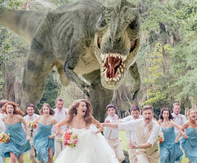 Doi tineri îndrăgostiți au avut parte de un adevărat horror în ziua nunții lor... cel puțin așa se vede din fotografiile de nuntă. Plictisiți fiind de banalele imagini de nuntă, unde toți zâmbesc după același șablon, mirii au hotărât să facă o ședință foto, după care fotografiile să iasă nu mai rele decât afișele promo ale unui thriller hollywoodian. Și pentru că mirele este pasionat de misterioasa lume a dinozaurilor, tinerii au hotărât ca anume acest personaj să fie generatorul de adrenalină a ședinței foto.