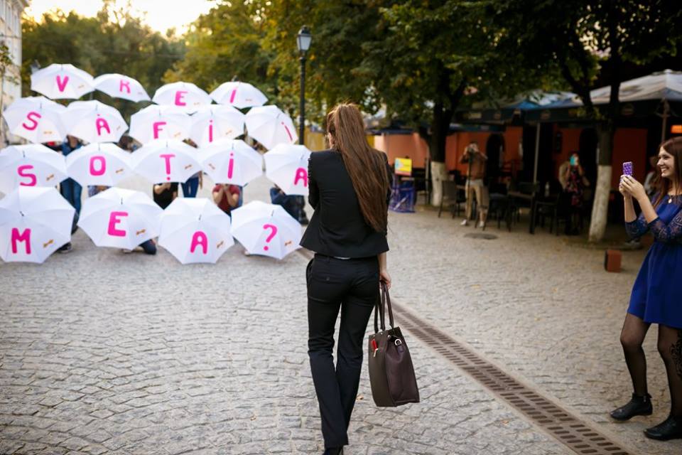 Cereri în căsătorie sub forma unui flash mob, la prima vedere, pare că le poți auzi și vedea doar în filme. Însă, de curând, această inițiativă a fost preluată și pusă în aplicare și la noi.