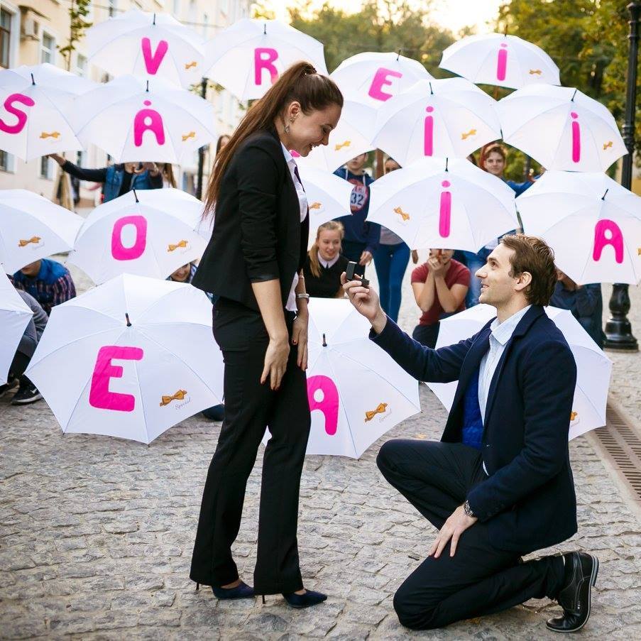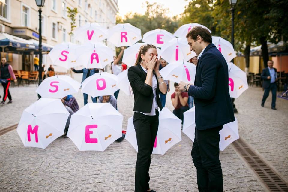 Un tânăr din Chișinău a reușit să-și impresioneze iubita, cerând-o în căsătorie chiar pe strada pietonală. Acest gest l-a făcut în timp ce se plimbau împreună în această zonă. Într-un moment, au apărut mai multe persoane cu umbrele care le-au îndreptat spre tânără, iar atunci când aceștia toți le-au deschis, a putut să vadă întrebarea emoționantă „Vrei să fii soția mea?”. Răspunsul pozitiv și plin de emoții al tinerei a încununat întregul gest, iar datorită fotografului Denis Doni, care a imortalizat toate aceste momente, vor avea posibilitatea să le retrăiască și peste ani.