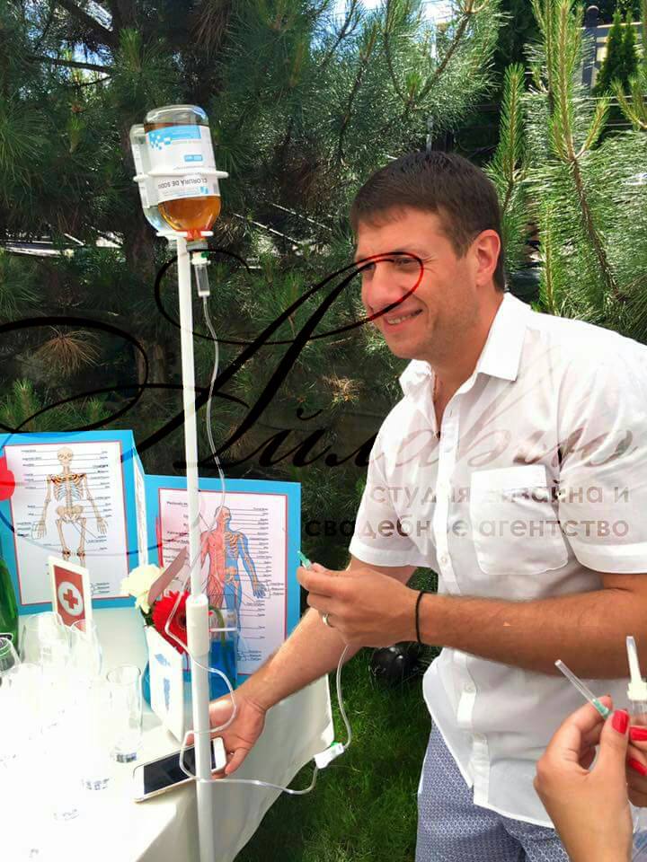 În centrul atenției a fost Candy Bar, colorând evenimentul și decorul cu adevărate perfuzii și seringi. Oaspeții au fost încântați și surprinși. Nunta a fost neordinară și originală.