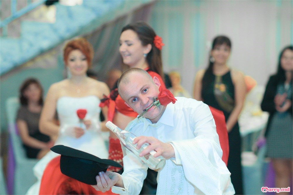 Probabil fiecare dintre noi a asistat cel puţin o dată la o astfel de situaţie în timpul nunţii, când moderatorul strigă cu disperare în microfon "unde este mirele?", în timp ce mireasa continuă să danseze cu invitaţii, adică singură. Nu uita că din acea seară voi suntenţi un tandem viu, şi dacă totuşi este necesar să dispari pentru ceva timp, ia-ţi şi mireasa cu tine. Nu e atât de grav când moderatorul îi caută pe ambii miri, e şi romantic, într-o oarecare măsură. Noi însă sperăm că dacă ai citit cu atenţie punctele 2, 5 şi 6, atunci acest punct este inutil pentru tine.