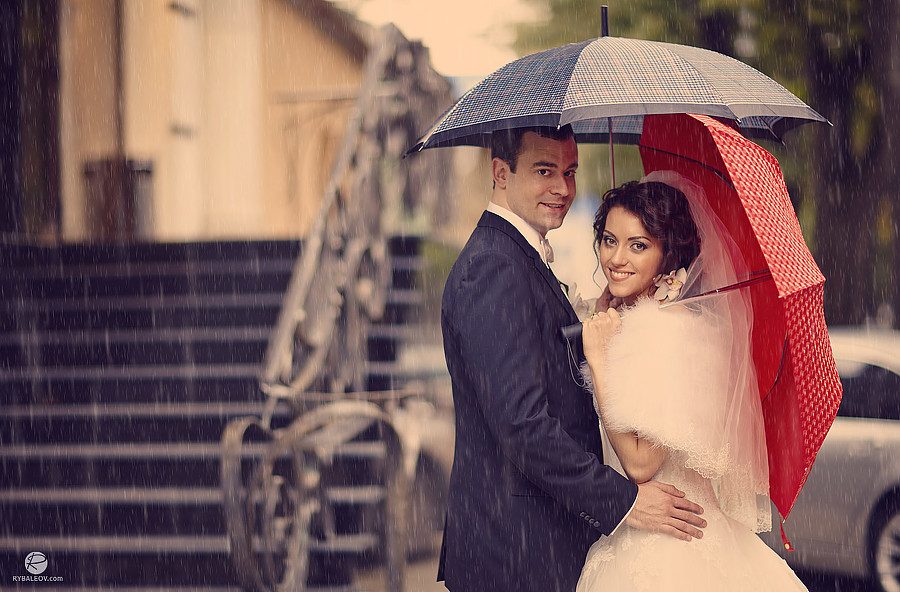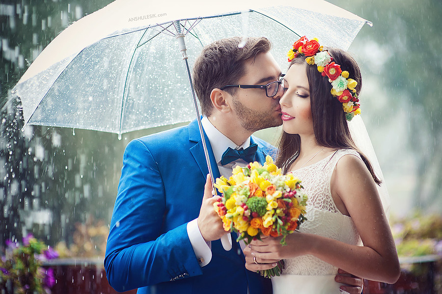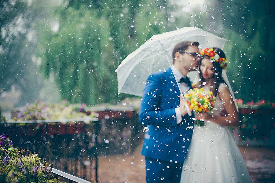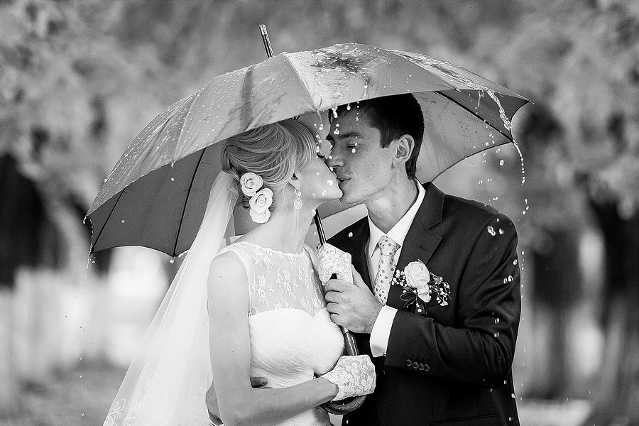 Se spune că ploaia în ziua nunții aduce noroc în viața tinerilor căsătoriți. Așa o fi sau nu, o pot spune doar mirii, care au avut parte de ploaie în ziua nunții lor. Iar pentru că data nunții se stabilește cu mult timp înainte, șansele de a intui cum va fi timpul sunt foarte puține, de aceea toți se roagă de vreme frumoasă. Până la urmă, ploaia în ziua nunții poate fi motiv de întristare sau oportunitate de a face fotografii interesante (dacă aveți noroc de un fotograf aventurier). În galeria foto de mai jos vedeți câțiva miri curajoși, care nu s-au speriat de ploaie în ziua nunții lor.