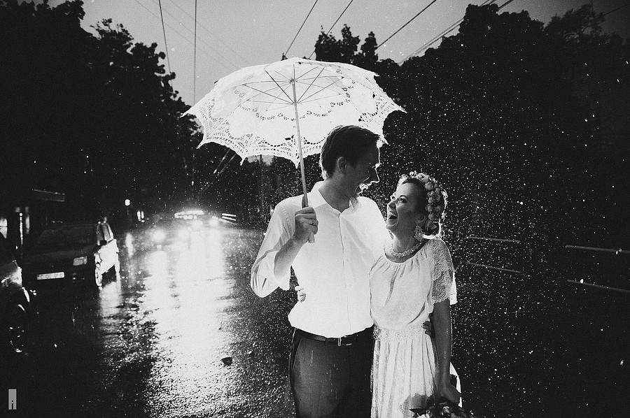 Miri sub umbrelă. 10 fotografii de nuntă ale mirilor care nu s-au speriat de ploaie