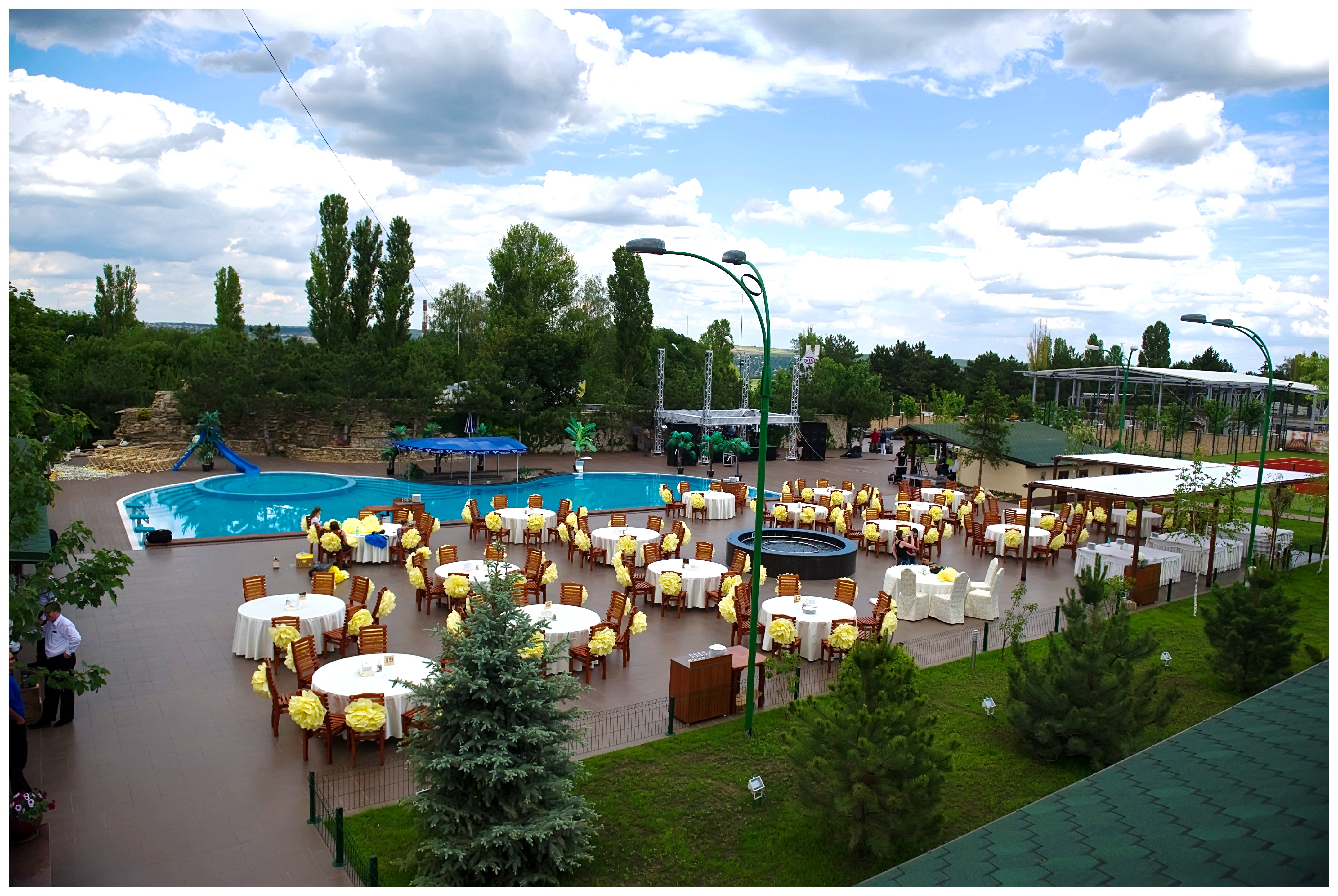 Terasa Restaurantului "President" dispune de un spațiu foarte generos, oferind oaspeților noștri eleganța unui restaurant modern în aer liber, piscină și o atmosferă de neuitat! Toate alcatuiesc elementele unui peisaj unic pentru ta specială.
