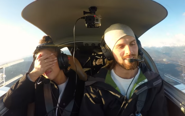 (Video) Și-a luat iubita la o plimbare cu avionul și a păcălit-o că are probleme cu motorul. Ce a urmat a cucerit inimile tuturor