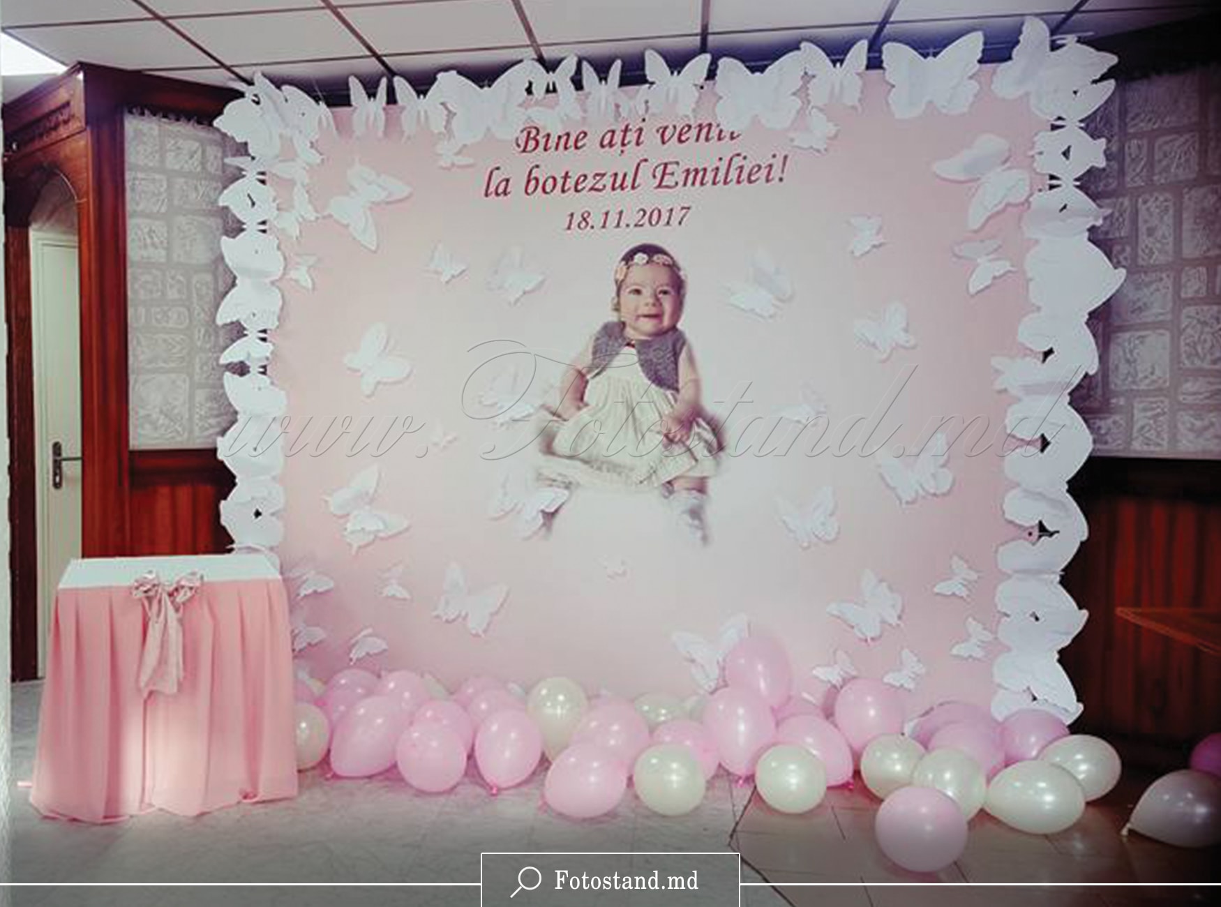 Nunta este un eveniment minunat ce unește două destine într-unul singur. Compania Fotopanou vine în ajutorul dvs. pentru a decora sala de festivități cu un fotopanou de orice dimensiuni și cu un design personalizat pentru fiecare pereche în parte. Pe fundalul brandwall– lului (press wall) veți putea face fotografii minunate împreună cu invitații, ce vor rămâne în amintirea tuturor și își vor aduce aminte și peste ani de nunta voastră. Pe banner–ul de nuntă pot fi imprimate fie inițialele dvs. sau peisajul unor locuri minunate, de asemenea pozele voastre împreună, orice dorința cu Fotostand.md devine realitate.