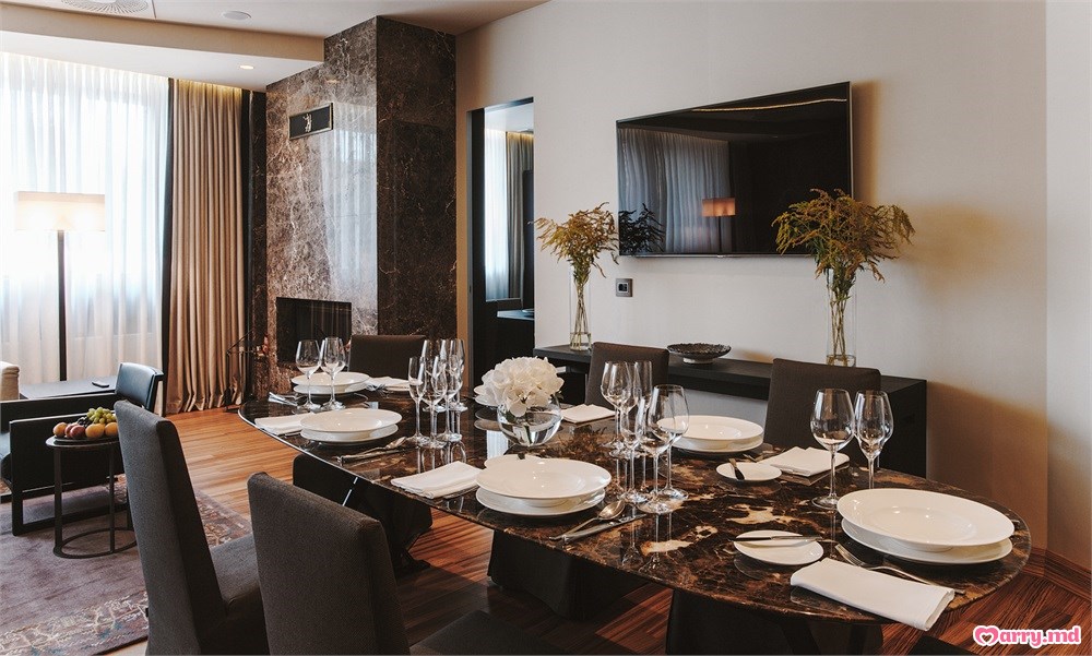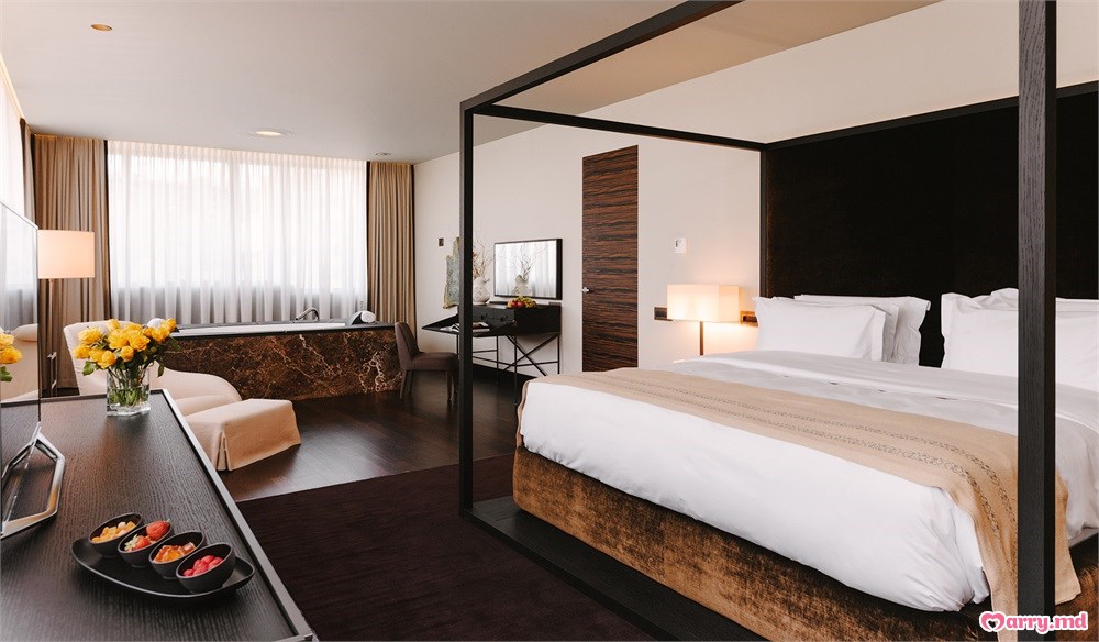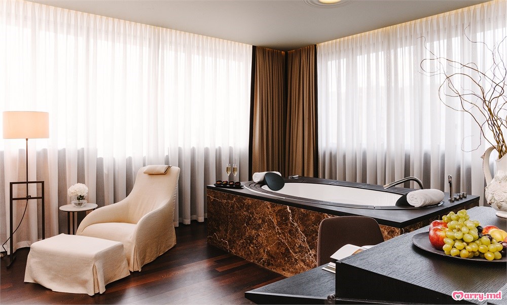 Pentru a petrece o seară deosebită în doi, hotelul nostru vă propune o cameră superbă, cu un decor rafinat și niște detalii uimitoare. Apartamentul este dotat cu șemineu, covoare din țesături exclusive, decorațiuni scumpe și mobilier creat de designer-ul Antonio Citterio, care creează o atmosferă calmă și plăcută.
