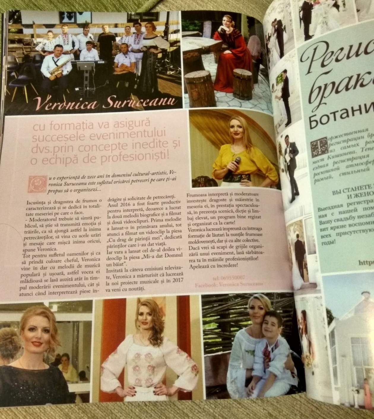 Veronica Suruceanu, moderatoare și interpretă la evenimentul sufletului tău! Dicția perfectă, vocea caldă, prezența scenică eleganta, prestația spectaculoasă, sunt doar câteva calități care o caracterizează! Dacă vrei să ai un eveniment cu un program bine regizat, coordonare până la cel mai mic detaliu, organizare ca la carte, lasă-ți sărbătoarea ta în mâinile maiestrului în ceremonii, astfel vei avea parte de un vis realizat!