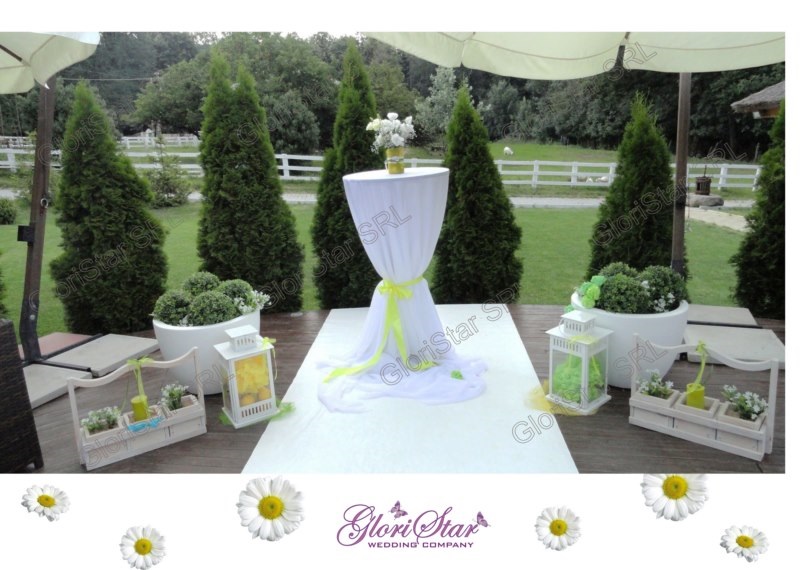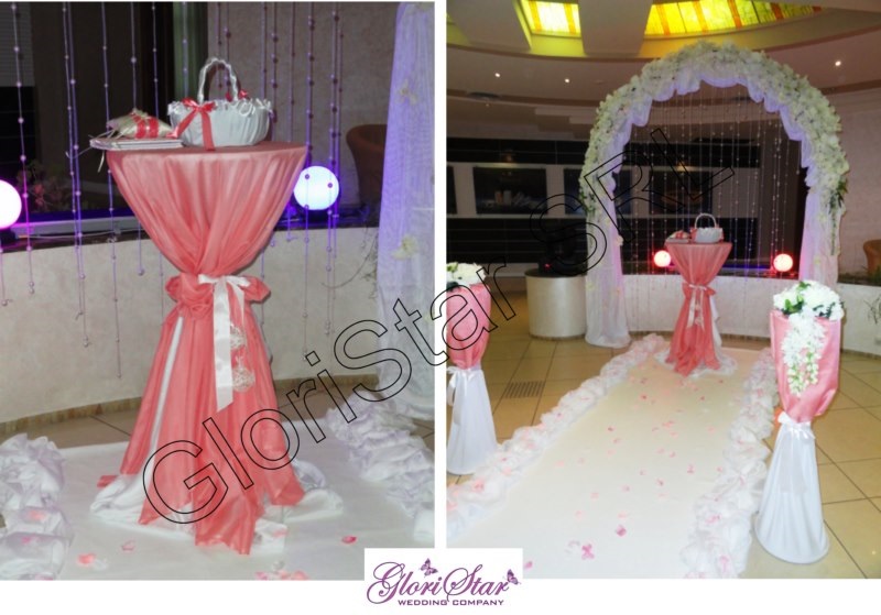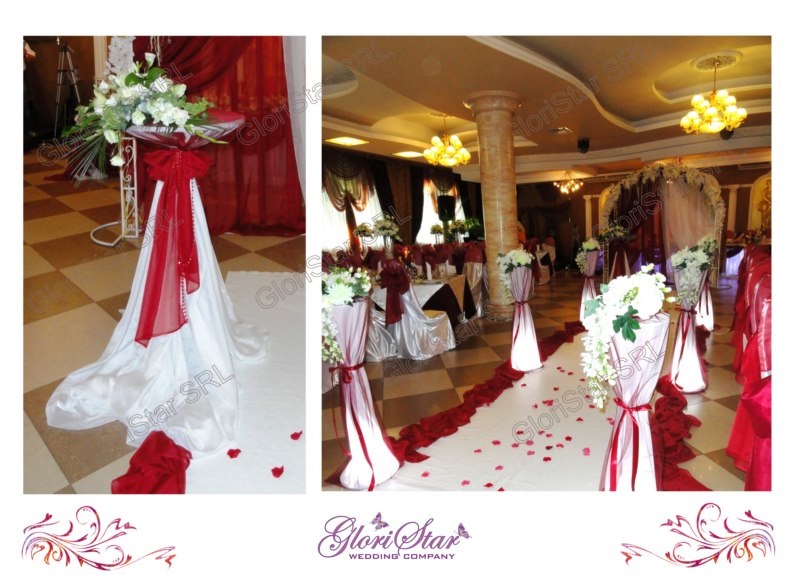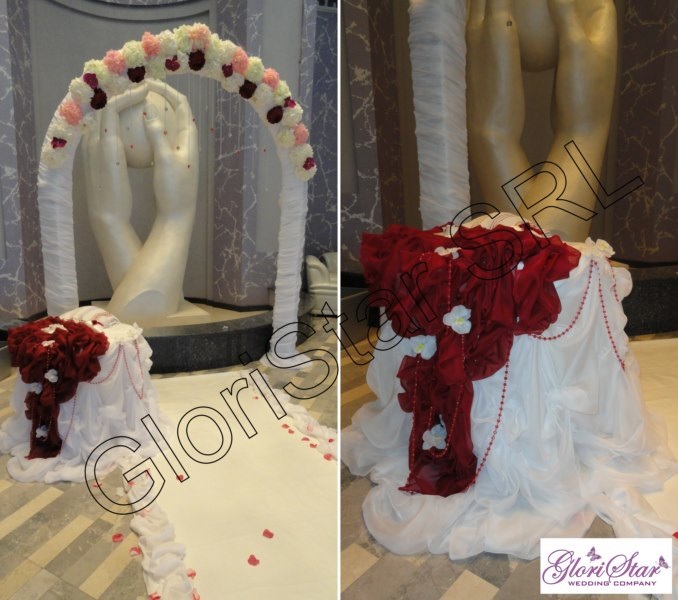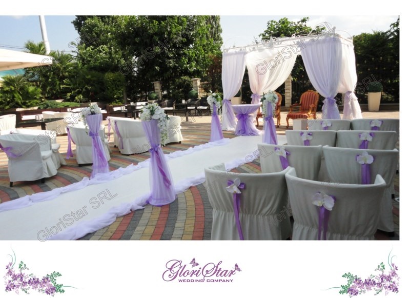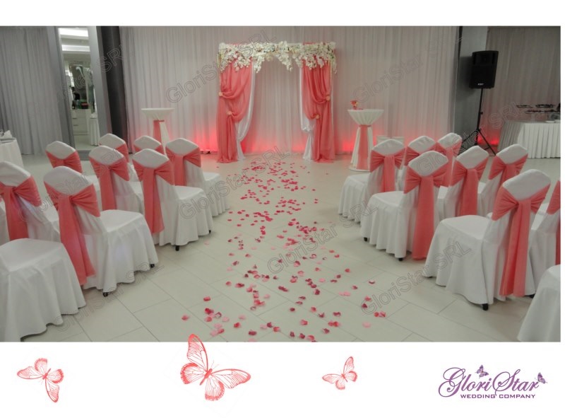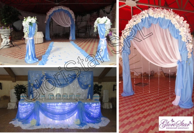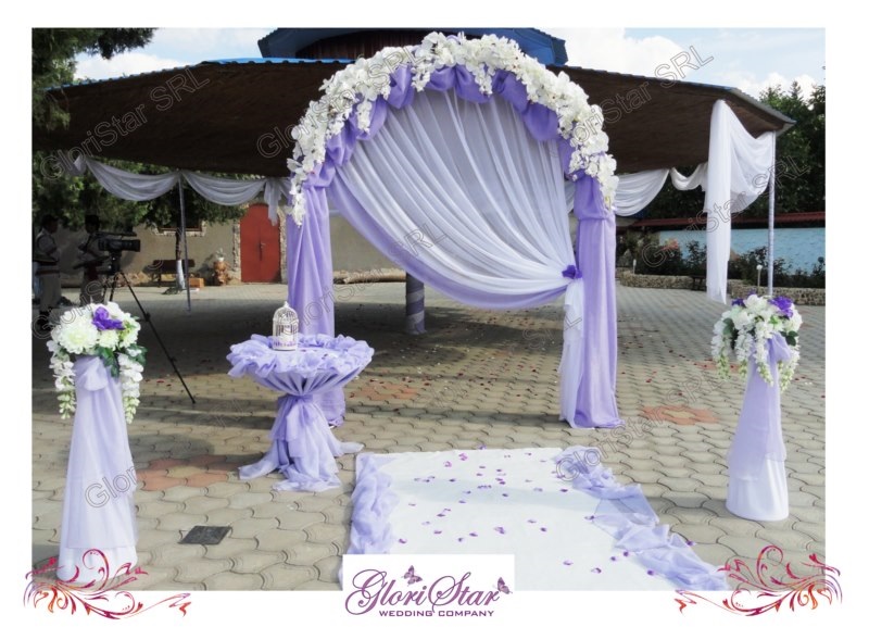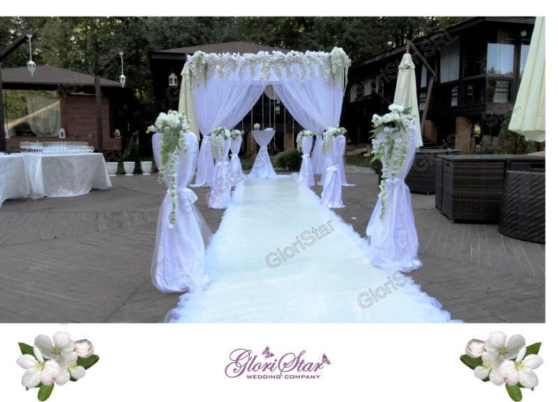 • organizarea și decorarea ceremoniilor de înregistrare a căsătoriei în aer liber - foișor, arca, baldachin, coloane iluminate, covor și drum din petale de trandafir;