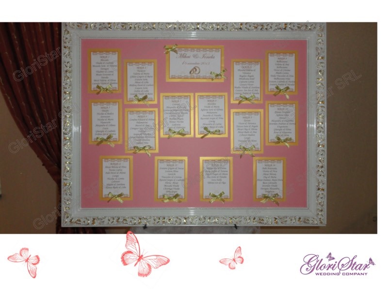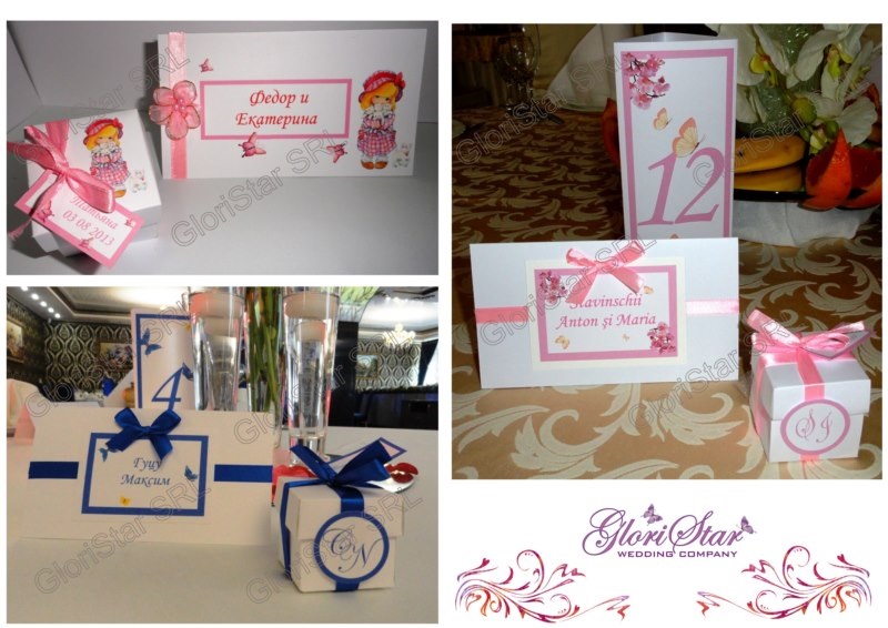 • accesorii poligrafice pentru nuntă - cărți pentru felicitări, invitații, cartonașe pentru mese, panoul de repartizare a oaspeților ș.a.;