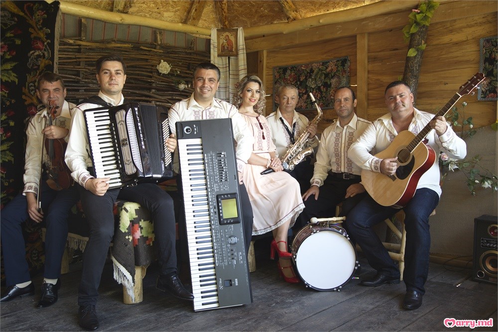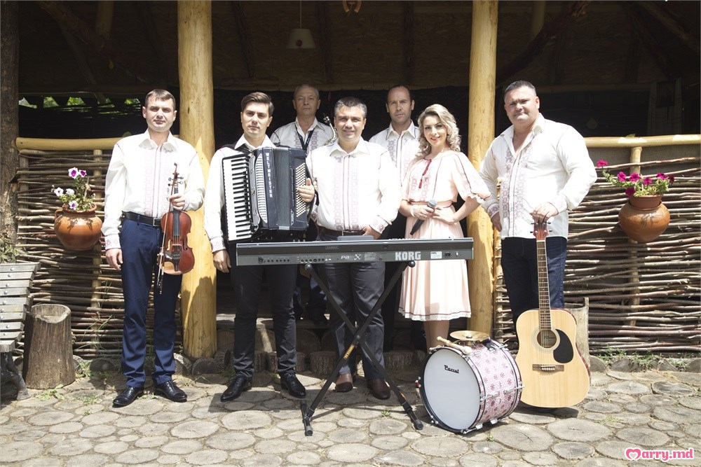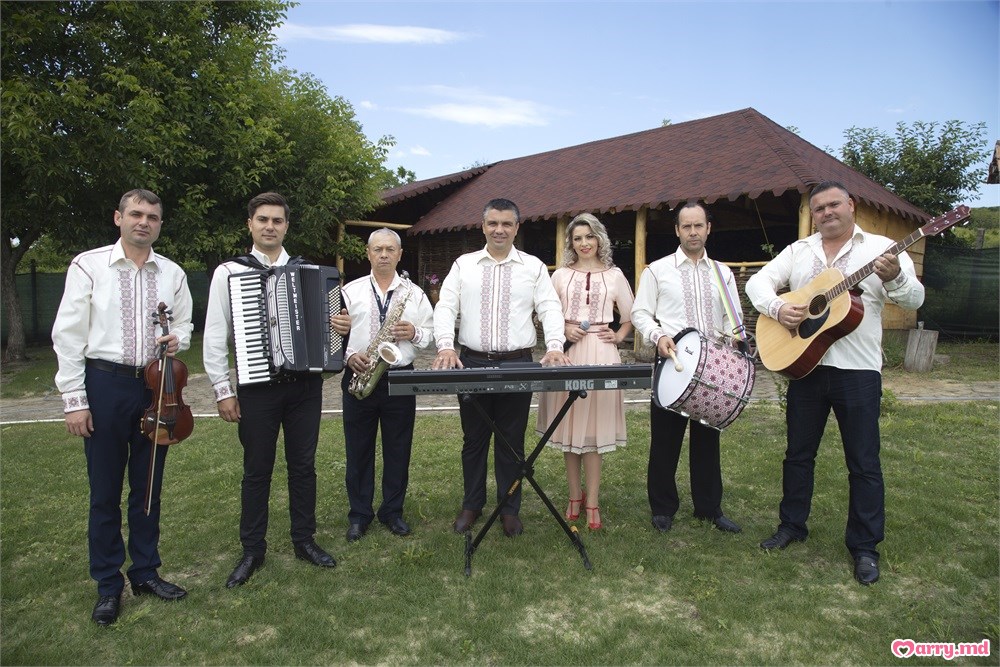 Componența formației - 7 persoane: - instrumente: clape, saxofon, chitară electrică, vioară, acordeon, toboșar; - solistă + moderatoare; - 2 soliști bărbați; La dorință, avem posibilitatea de a invita și alți colegi la țambal, trompetă ș.a. Programul nunții sau al altei petrecerii se discută în prealabil, ca dumneavoastră să cunoașteți din start scenariul și să puteți, la dorință, să introduceți elementele pe care le doriți. Repertoriul este compus din variații muzicale: populare-etno-estradă moldovenească, românească, rusă, bineințeles, și internațională. Prețurile variază în funcție de ziua, locul și componența formației, pe care o doriți. Conducator artistic: Sandu Leahu tel.: /+373/69130120.
