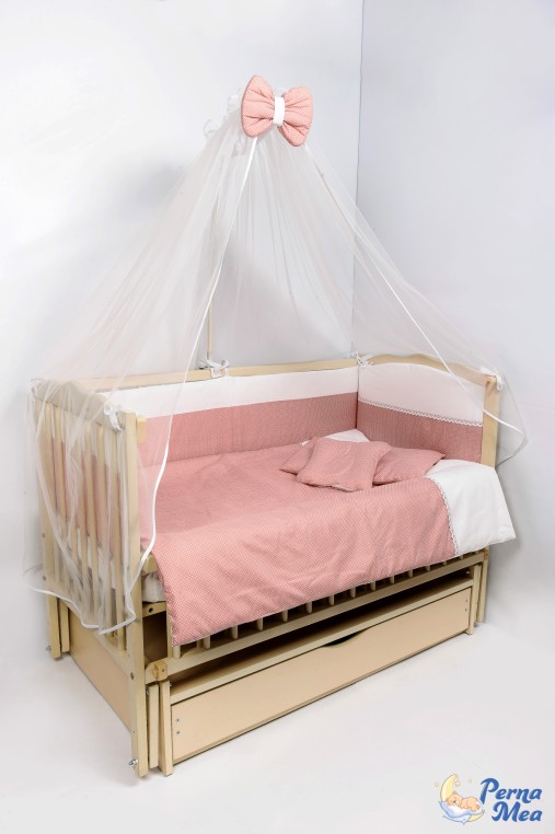 - Borduri laterale (4 bucati) 120x32 cm-2buc. si 60x32cm-2 buc., bumbac 100%, umplutura vatelina antialergica, bordurile sint prevazute cu fermoar pentru a fi detasabile si lavabile.