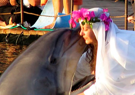 Шерон Тандлер, обеспеченная дама из Лондона, вышла замуж за своего избранника, с которым впоследствии поделилась фамилией. Ее мужем стал дельфин Сэнди, проживающий в Эйлате. Шэрон познакомилась с ним 15 лет назад, когда приехала заниматься дайвингом на Красное море. С тех пор женщина стала приезжать в город регулярно, чтобы повидаться с любимым дельфином. Спустя некоторое время Шерон Тандлер обратилась к администрации рифа для получения необычного разрешения на регистрацию брака с Сэнди. Представитель руководства был удивлен, но согласие было получено. Сотни посетителей стали свидетелями необычной церемонии: невеста в подвенечном платье бросилась в воду к любимому мужу.