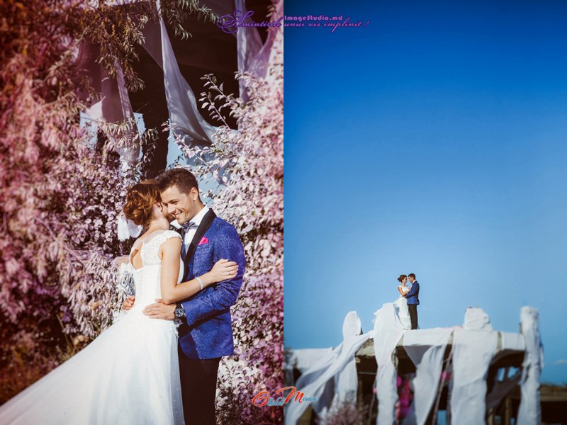 Думитру Талмазан, совместно со своей командой, предложил романтичный декор, созданный при помощи большого количества легкой ткани нежного пастельного оттенка, которая при легком дуновении ветра создает эффект свободы и гармонии, под стать нашим героям. Фотографии, сделанные коллективом ImageStudio с удивительной точностью отразили три решающих аспекта - декор, поведение молодых и антураж - благодаря которым все получилось непередаваемо красиво и уникально.