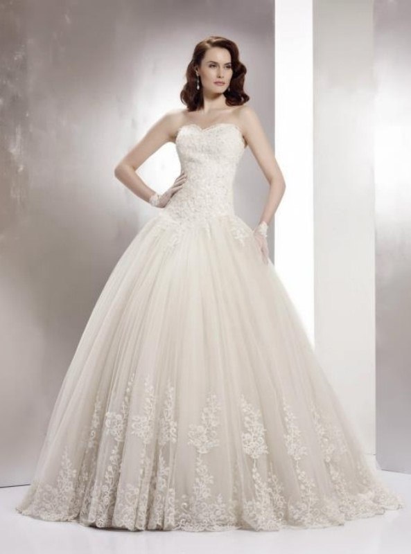 Поэтому, заказывая платье, помни, что даже оригинал никогда не будет смотреться на тебе точно так же, как на фотомодели, ведь у вас могут быть совершенно разные параметры, цвет кожи и волос. Кроме того, китайцы немного изменяют модели, используя более дешевые материалы, что, несомненно, не может не отразиться на внешнем виде твоего платья. Например, они могут использовать бисер вместо страз Swarovski, атлас вместо шелка. Особенно следует быть внимательными тем, кто заказывает платье с кружевами. Китайцы не используют дорогое кружево для пошива нарядов, и многие девушки, заказавшие свадебное платье в стиле Грейс Келли или Кейт Миддлтон, жалуются на то, что то модель, которую они получили, оказалась слишком колючей, из-за чего ее неудобно носить. Невесты, которые заказывали наряды, в которых кружевами была усыпана вся юбка, были шокированы тем, что на тех моделях, которые они получили, кружев было намного меньше, из-за чего портился весь внешний вид платьев. Поэтому, при покупке китайского свадебного платья, будь осторожна и не выбирай модели, где в оригинале используются дорогие кружева и драгоценные камни. Например, невеста из Польши заказала себе свадебное платье, оригинал которого был сделан из шелка, а копия из атласа, а кристаллы Swarovski были заменены недорогими стразами. Но внешне платье практически невозможно отличить от оригинала. Единственное заметное отличие в том, что в оригинале платье матовое, а копия блестящая. На первом фото — модель в каталоге, на втором — невеста в дизайнерской модели в свадебном салоне, а на третьем она красуется в китайской копии. Как видишь, подделку практически невозможно отличить от оригинала, а заплатила она за нее всего 250$!